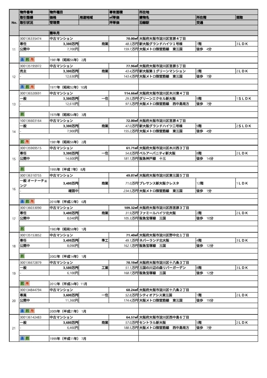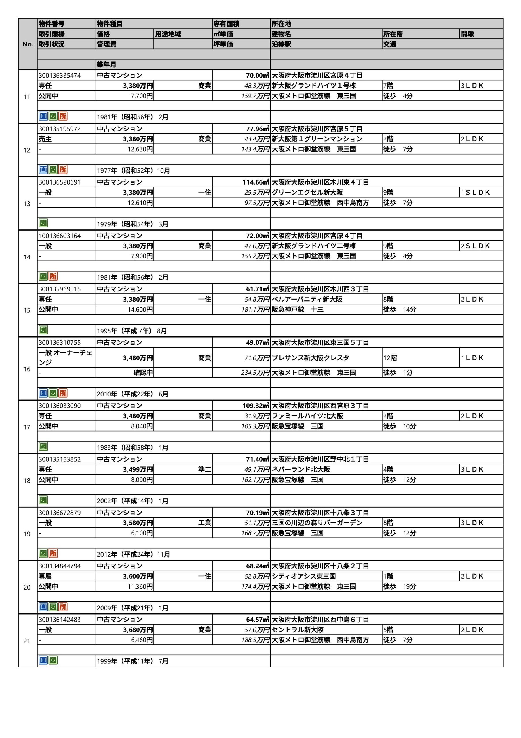 当社は新大阪、東三国を中心に大阪一円でマンションや一戸建て、土地売買の仲介を専業としており35年以上営業しています。