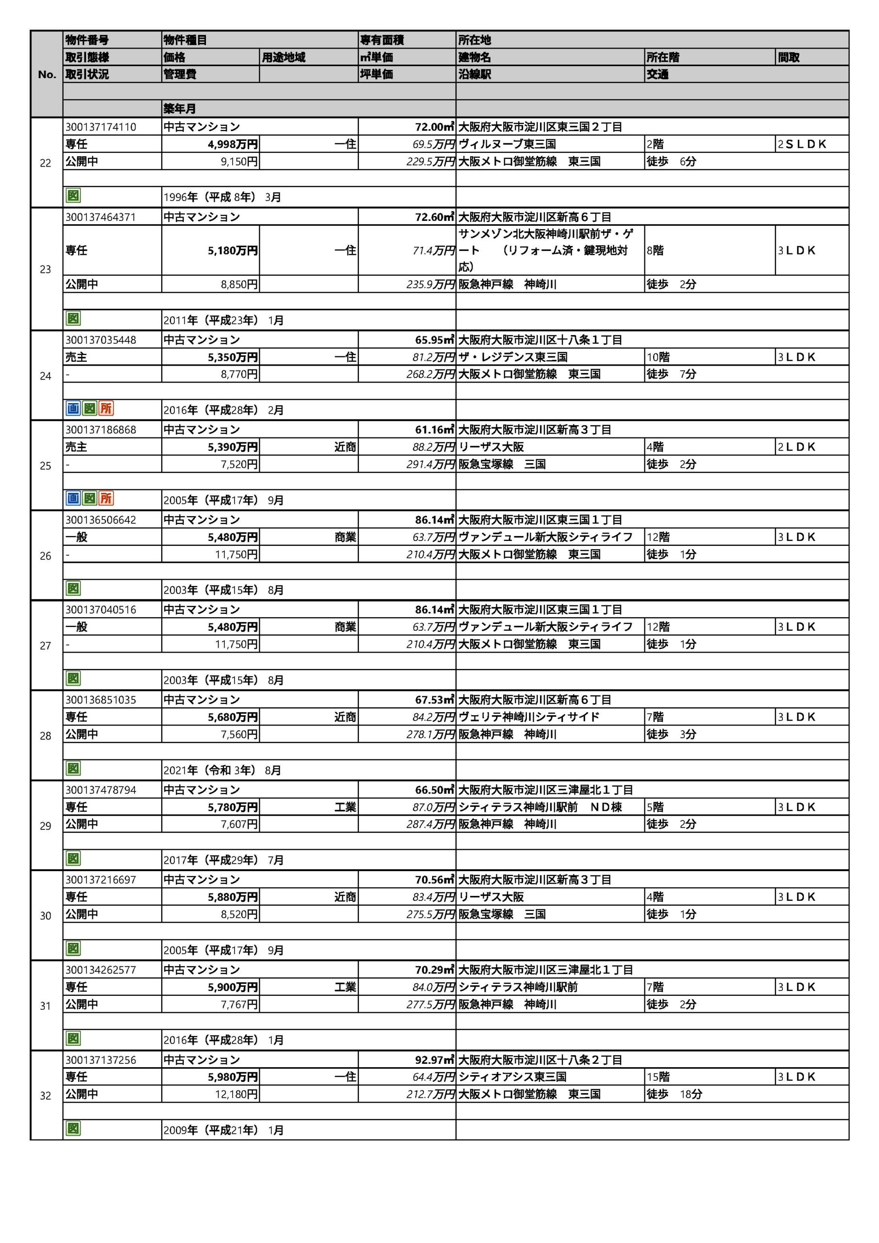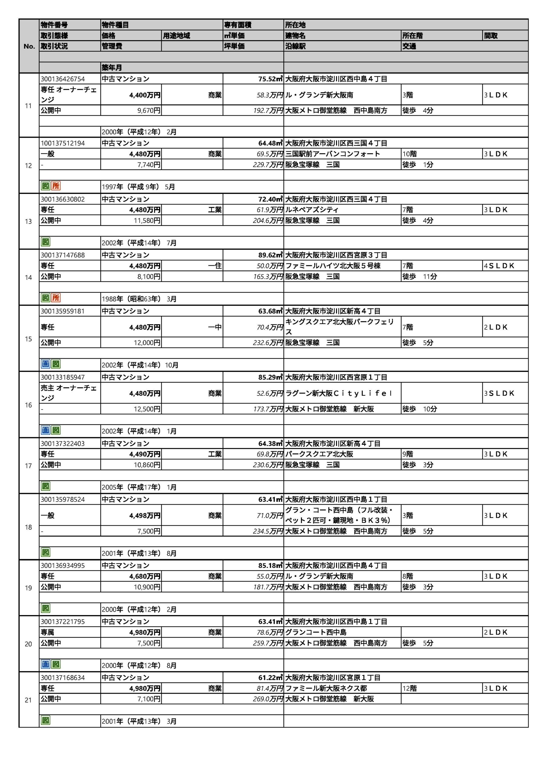 当社は新大阪、東三国を中心に大阪一円でマンションや一戸建て、土地売買の仲介を専業としており35年以上営業しています。