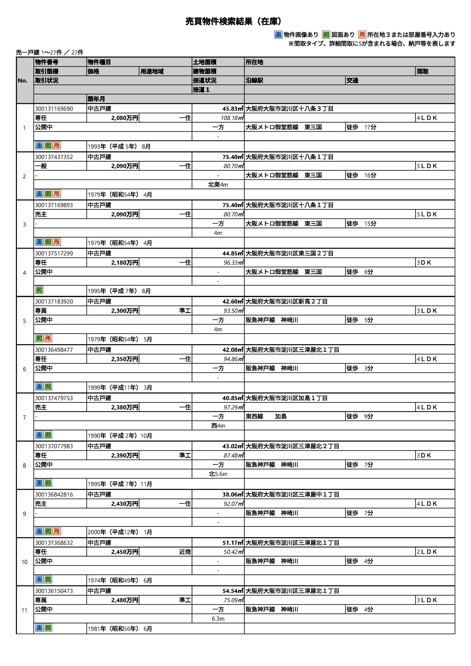当社は新大阪、東三国を中心に大阪一円でマンションや一戸建て、土地売買の仲介を専業としており35年以上営業しています。