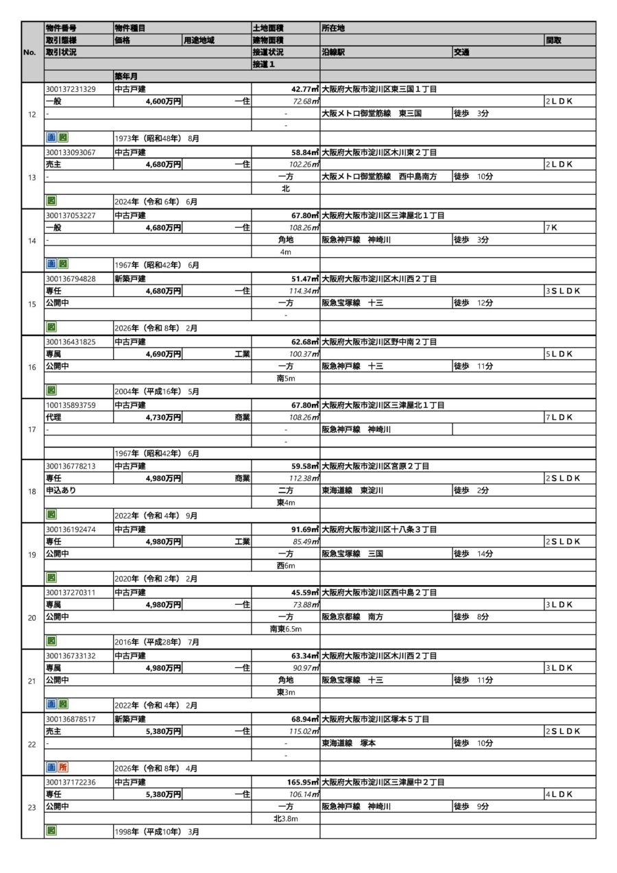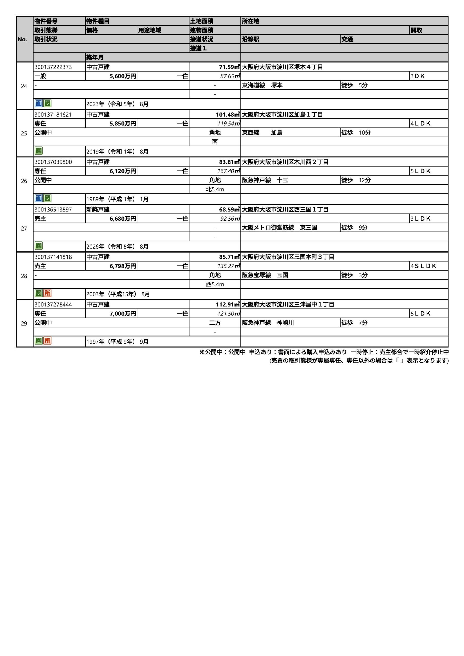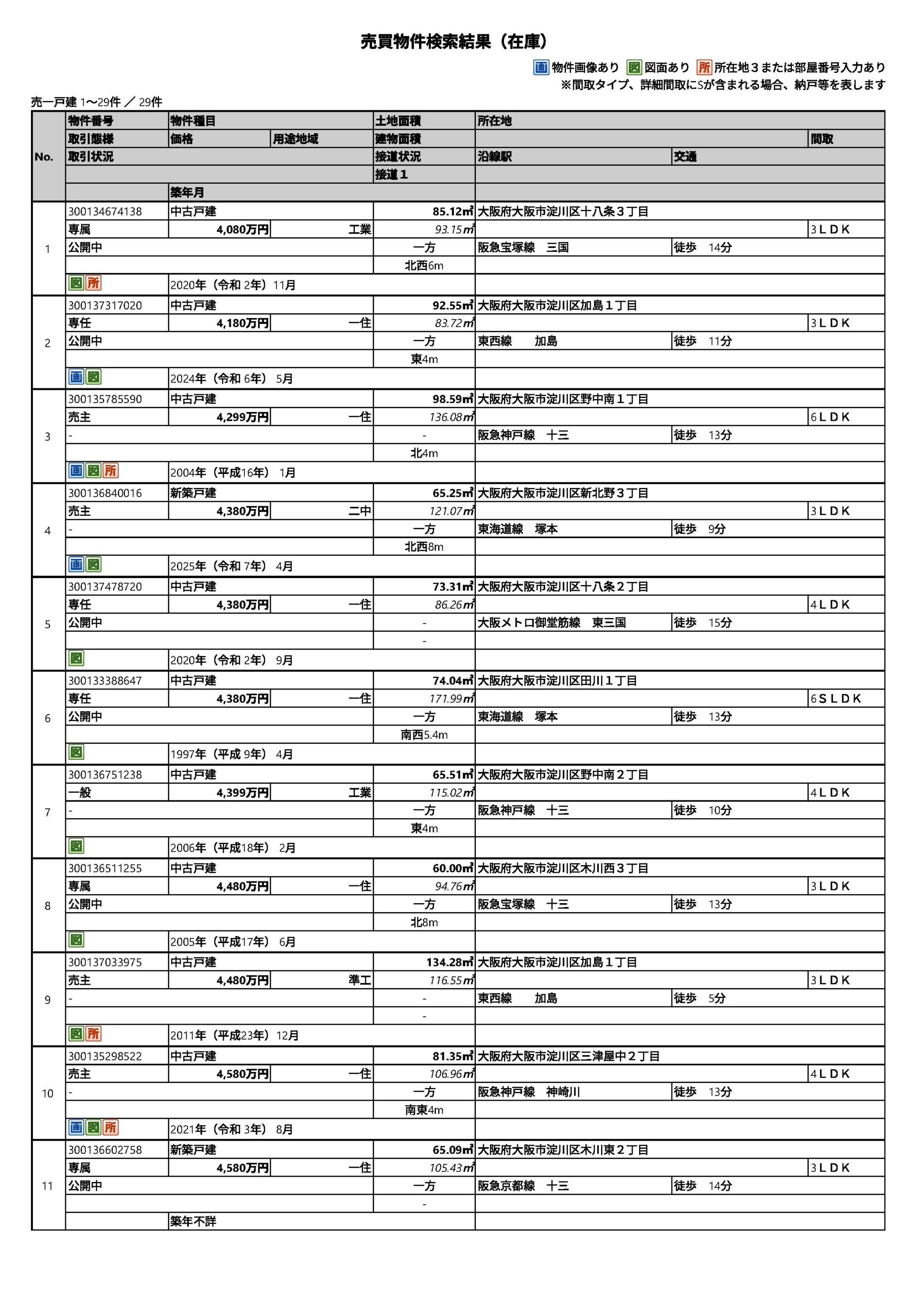当社は新大阪、東三国を中心に大阪一円でマンションや一戸建て、土地売買の仲介を専業としており35年以上営業しています。