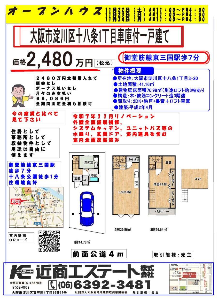 当社は新大阪、東三国を中心に大阪一円でマンションや一戸建て、土地売買の仲介を専業としており35年以上営業しています。